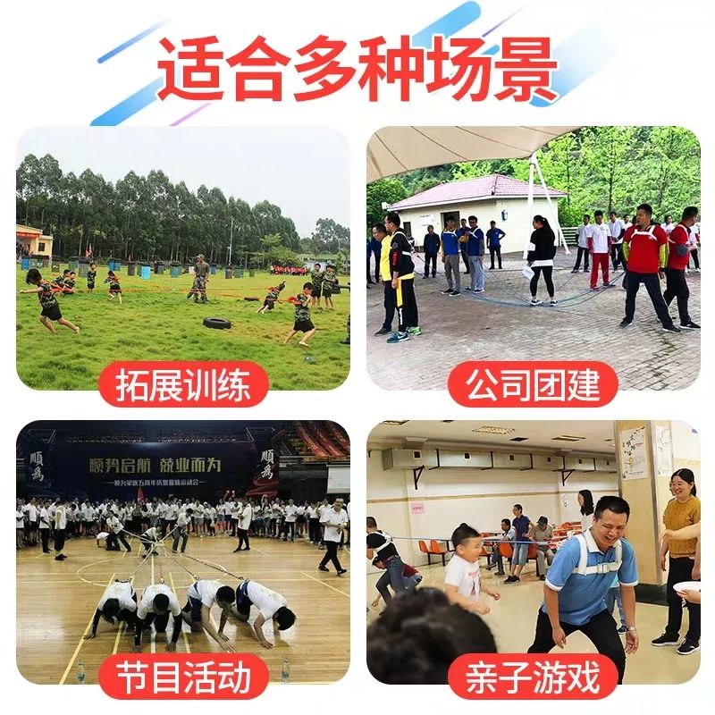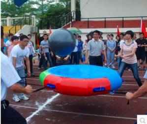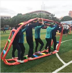 玩法简介:4-10人站在软质履带上前进,赛程为*米,往返一次,用时最短者获胜。