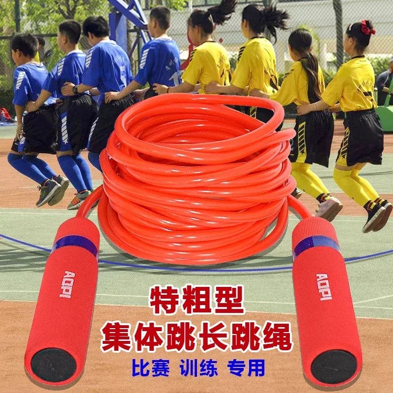 玩法简介:各队男、女各6人(包括摇绳2人),一队共计12人。摇绳队员相向站立,间隔距离不小于4.5米,以白色线为标志,摇绳队员不得踩或超越标志线。跳绳队员依次进入且必须一人一次跳过绳,方计次数一次(2人或以上人数同时跳过只计次数为一次,不得一人连跳)。在规定的3分钟时间内,跳过次数越多成绩越好。若两队最终成绩一样,则看失误的次数,失误的次数少的队成绩领先,如仍相等,则加赛一次2分钟跳大绳。