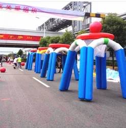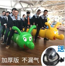 玩法简介:5名选手骑在毛毛虫上面,进行比赛时,把毛毛虫 提起来行走,需要参赛者步伐一致才能最快取胜,最快到达终点者获胜。