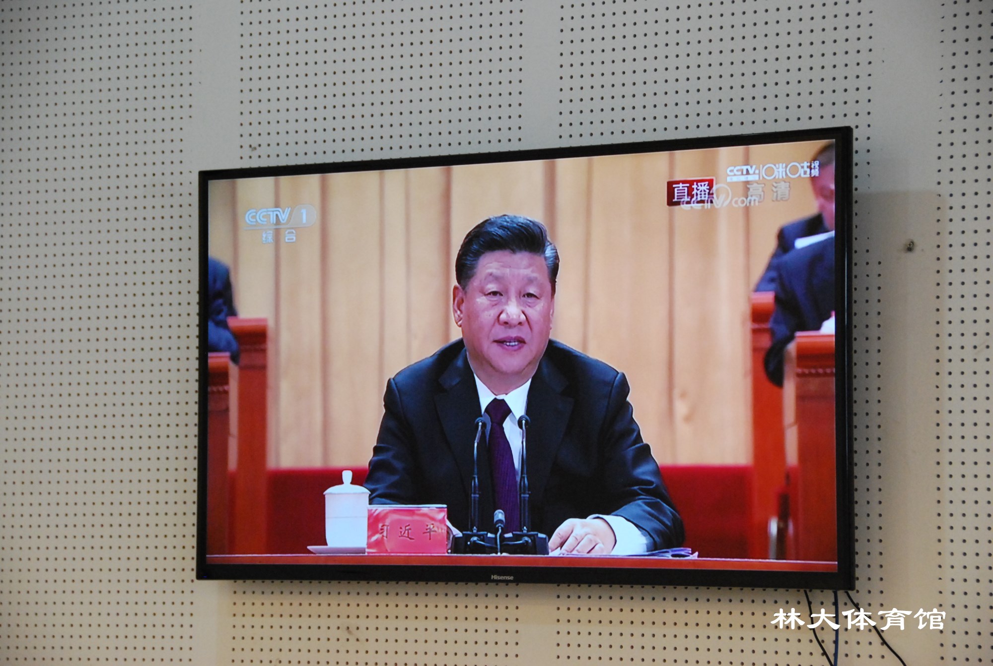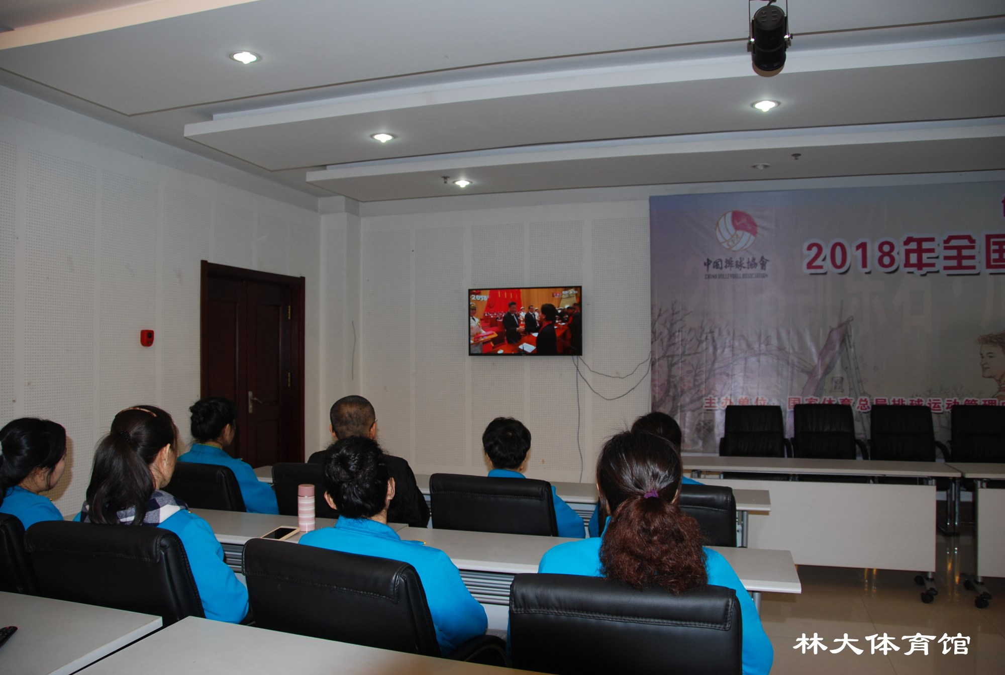 2018年12月18日上午10时,体育馆管理中心党支部组织员工在101会议室集中收看“庆祝改革开放四十周年大会”的现场直播。