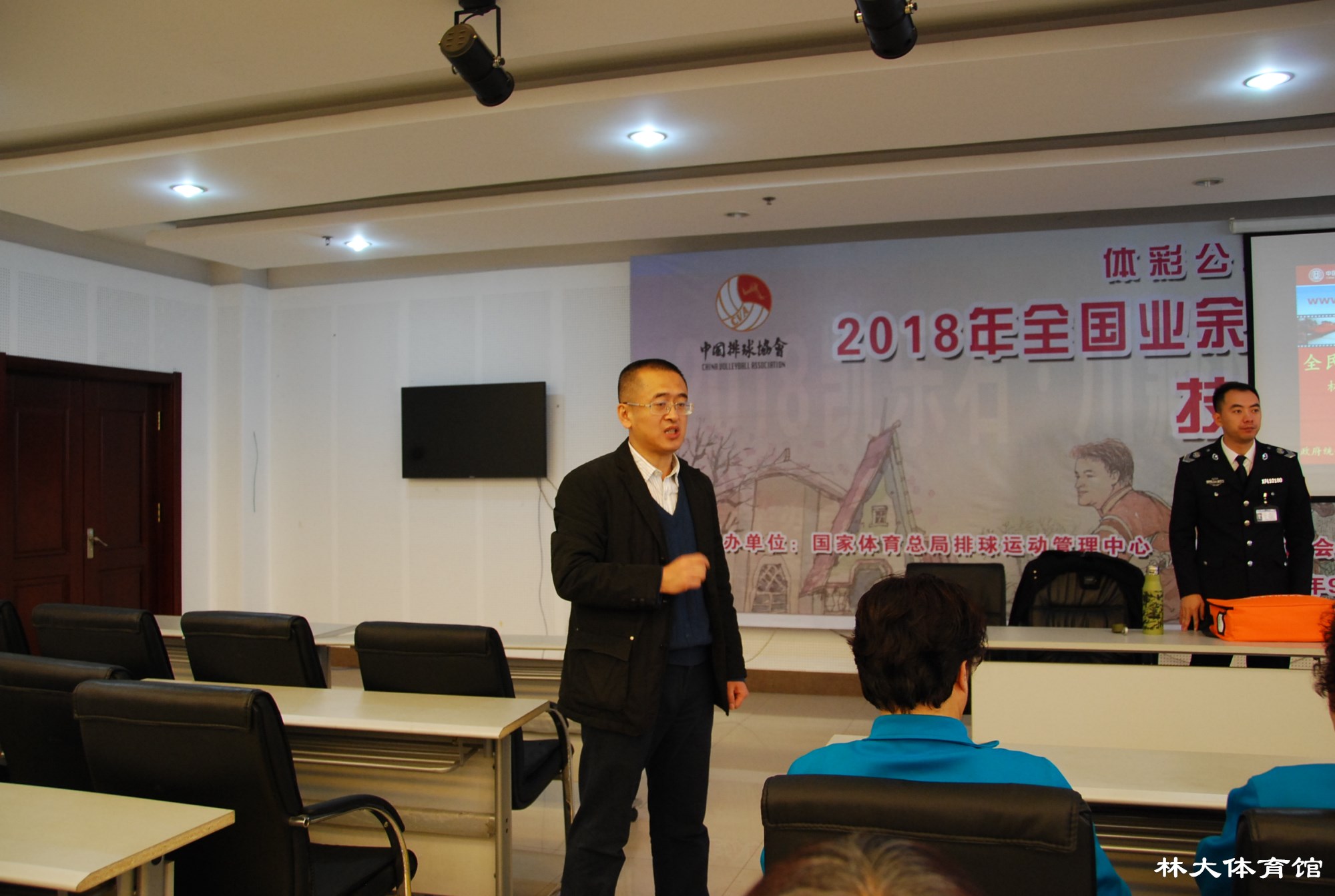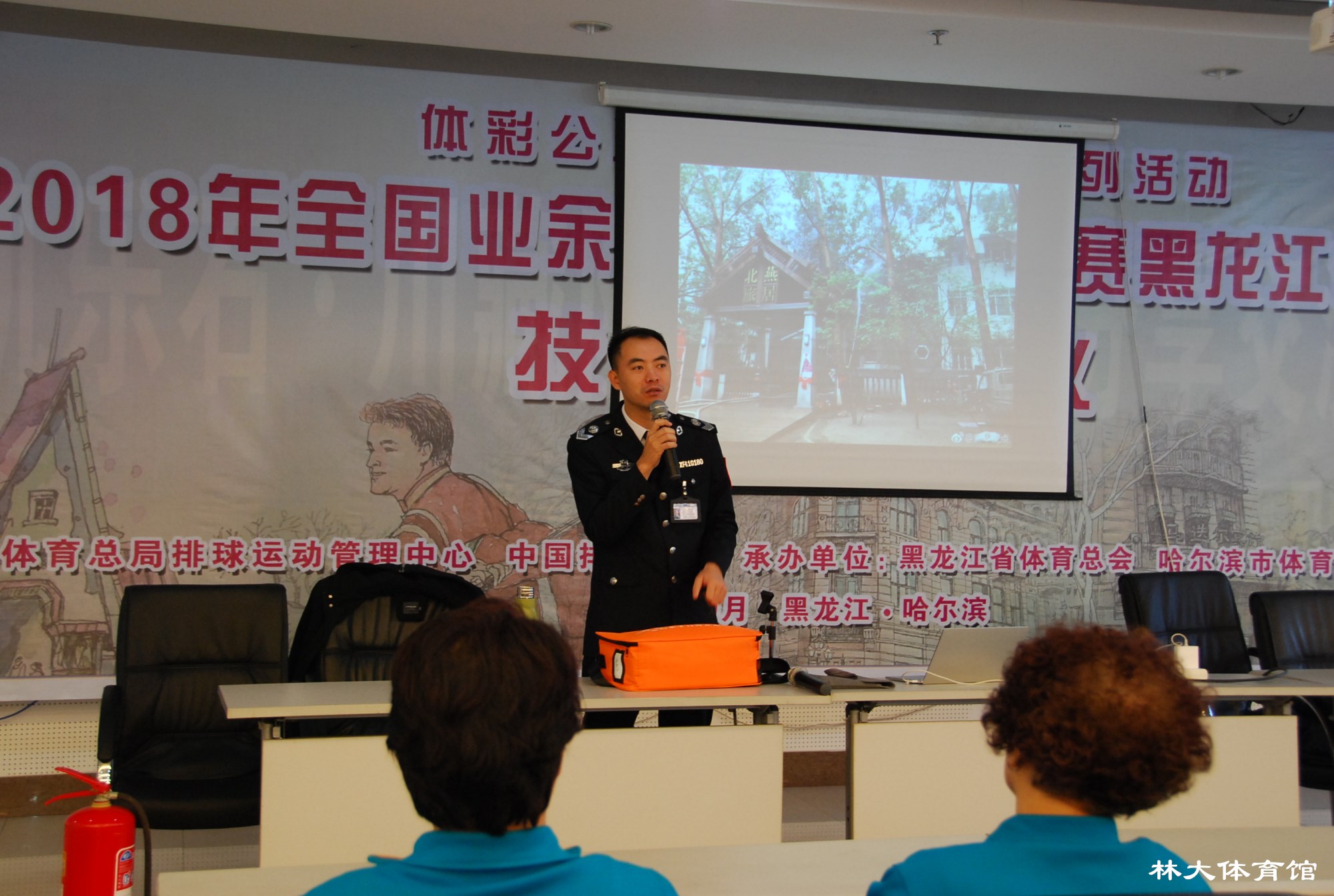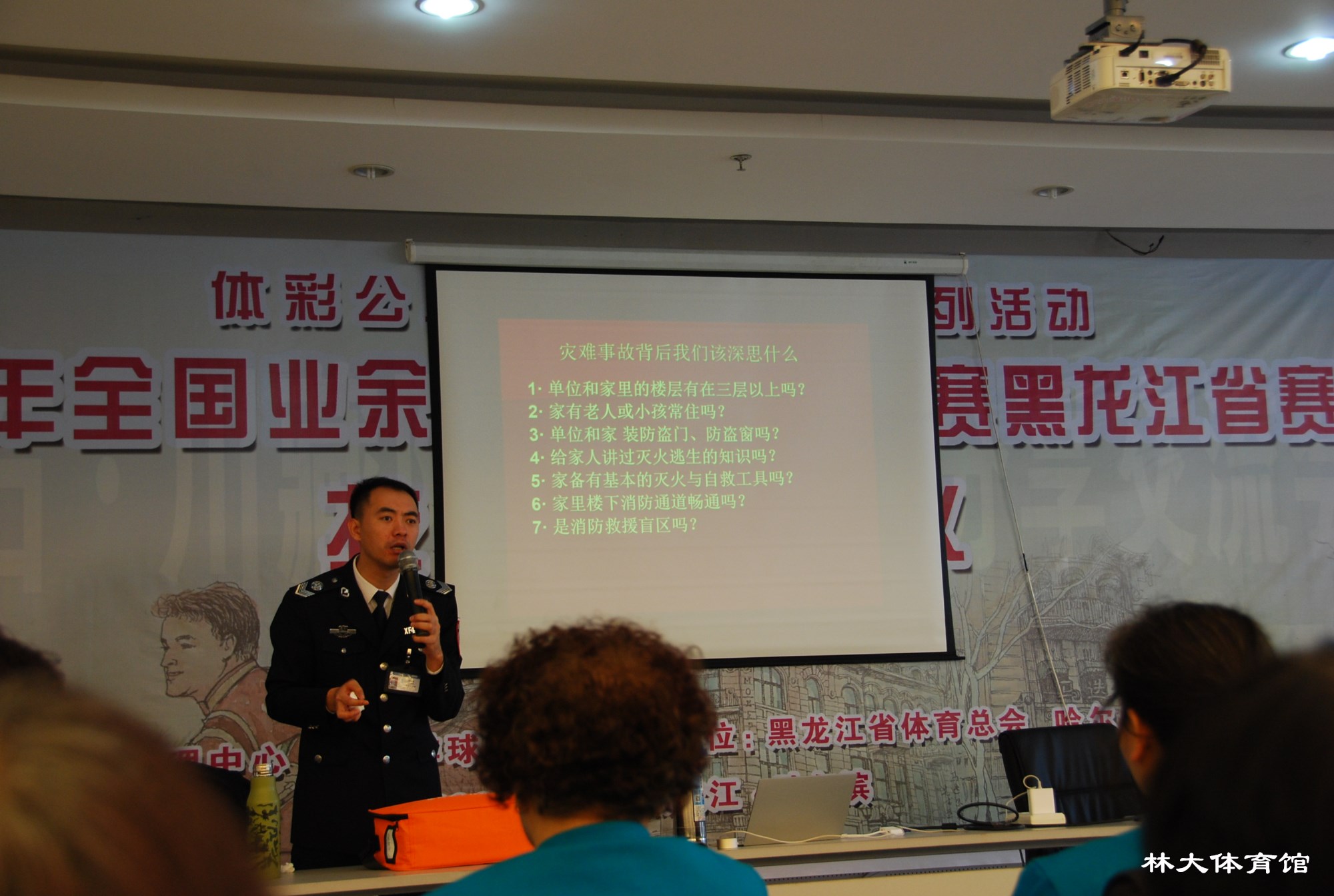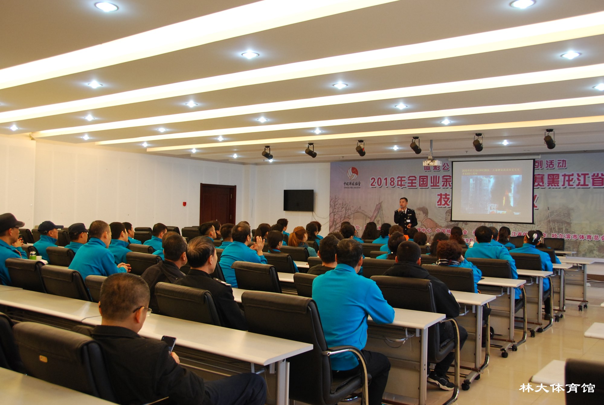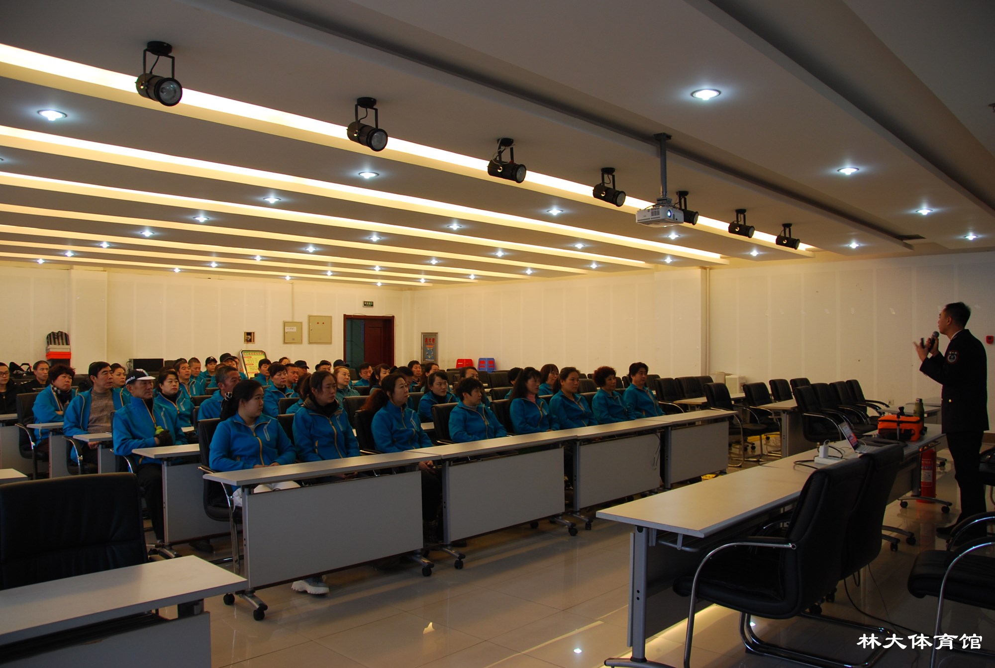 2018年11月29日上午九时,值此游泳馆装修后开业在即,并配合学校消防安全“百日会战”工作,为全面提高新老员工的安全消防意识,场馆中心组织全体员工在新闻发布厅进行了一次深入全面的消防培训讲座,本次讲座特邀哈尔滨市卫民安消防知识宣传中心周靖淇为主讲教官。