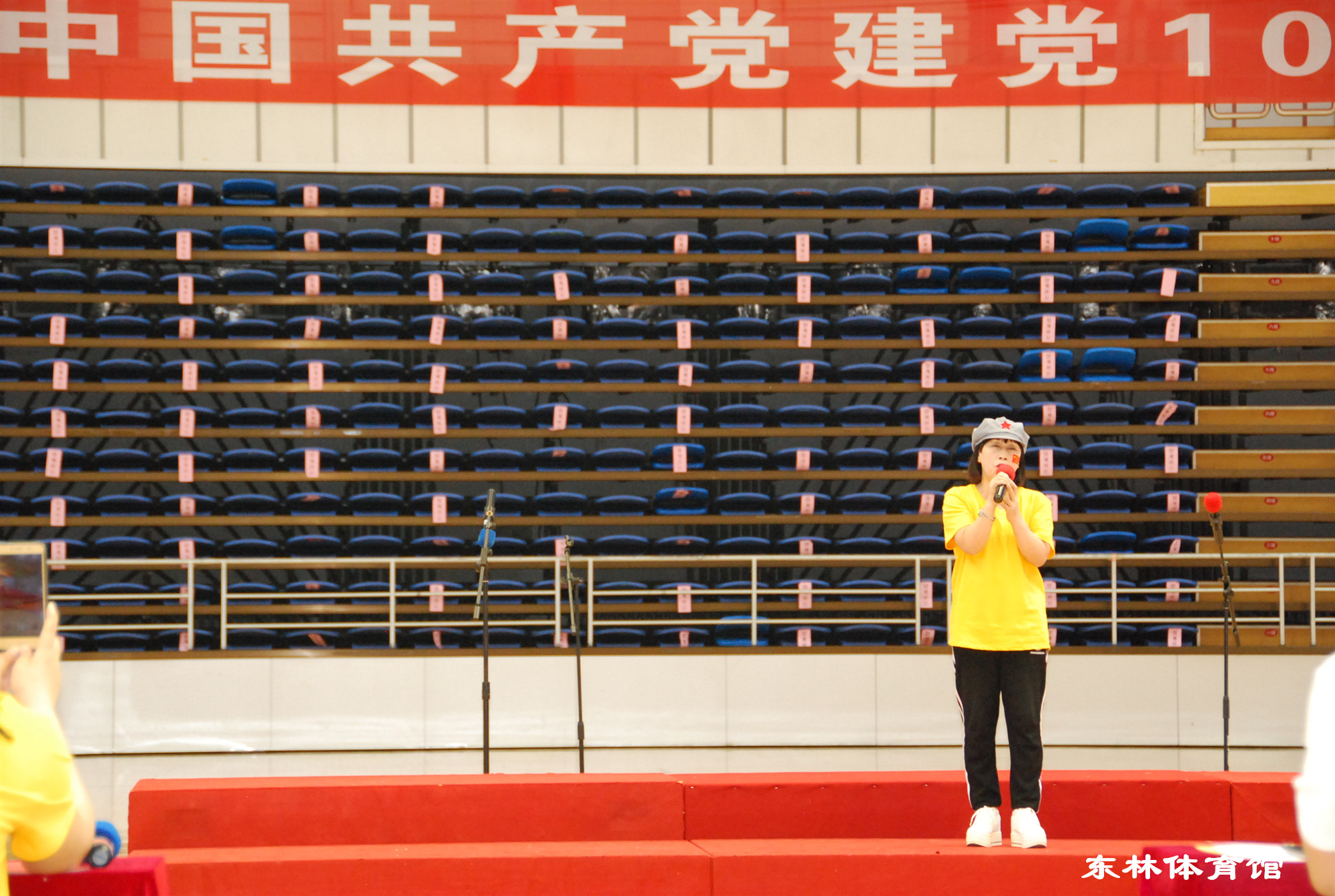 为展现中国共产党百年发展的奋斗历程,讴歌中国共产党带领中国人民建设伟大祖国的巨大成就,抒发场馆员工爱党爱国的热情,展示员工的精神风貌,鼓舞士气,2021年5月29日在体育馆的篮球馆举行了以“体育馆管理中心喜迎建党百年诗·歌汇演”为主题的党史学习教育活动。活动从策划、选题、组织、排练到结束历时两个月,全体员工每天早上提前一小时到岗,积极备演,认真排练,有的员工甚至利用午休或休班期间到馆进行排练。