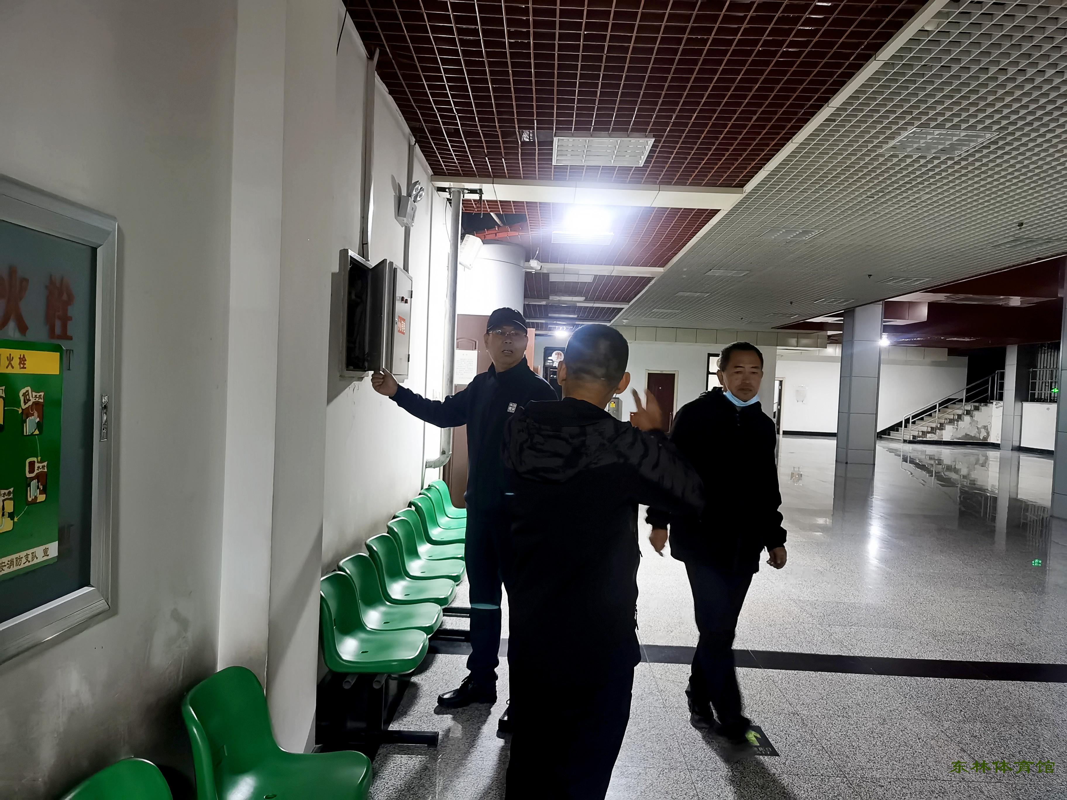 喜迎二十大,永远跟党走,在中华人民共和国成立73周年之际,按照学校9月30日安全工作会议要求,体育馆管理中心向经理并由经理向全体员工传达了会议有关精神。10月1日上午又组织体育馆、游泳馆电工(水处理)开展了安全实地大检查。在中心主任带领下,对体育馆、游泳馆的各楼层强弱电线路、电路控制箱、自来水管线进行了认真细致检查。在检查过程中中心主任提出安全工作是各馆的头等大事,不能有丝毫懈怠。电工(水处理)每天要进行安全巡视,门卫每天晚上要进行认真巡更,发现情况马上进行解决。所有在岗员工要不忘初心、牢记使命、认真工作、坚守岗位,以实际行动保证场馆平稳安全有效运行。