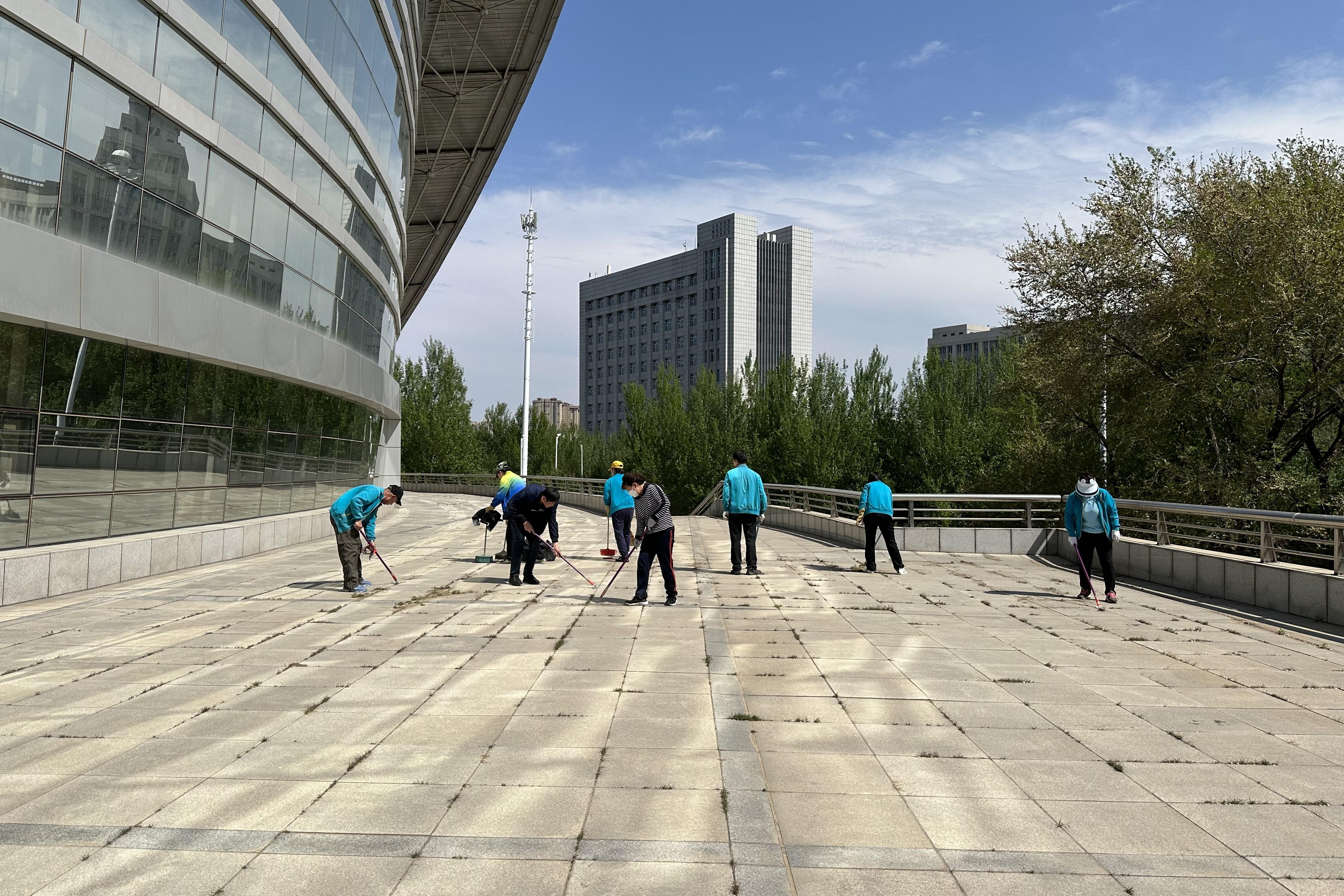 活动中,大家踊跃参与、分工协作、密切配合,不怕脏、不怕累、不怕苦,在尘土飞扬中舞动着扫把,在烈日炎炎下挥洒着汗水,经过大家共同的努力,清理了体育馆周边的垃圾、杂草及馆内各个出入口的卫生死角,使体育馆及周边的卫生环境焕然一新。