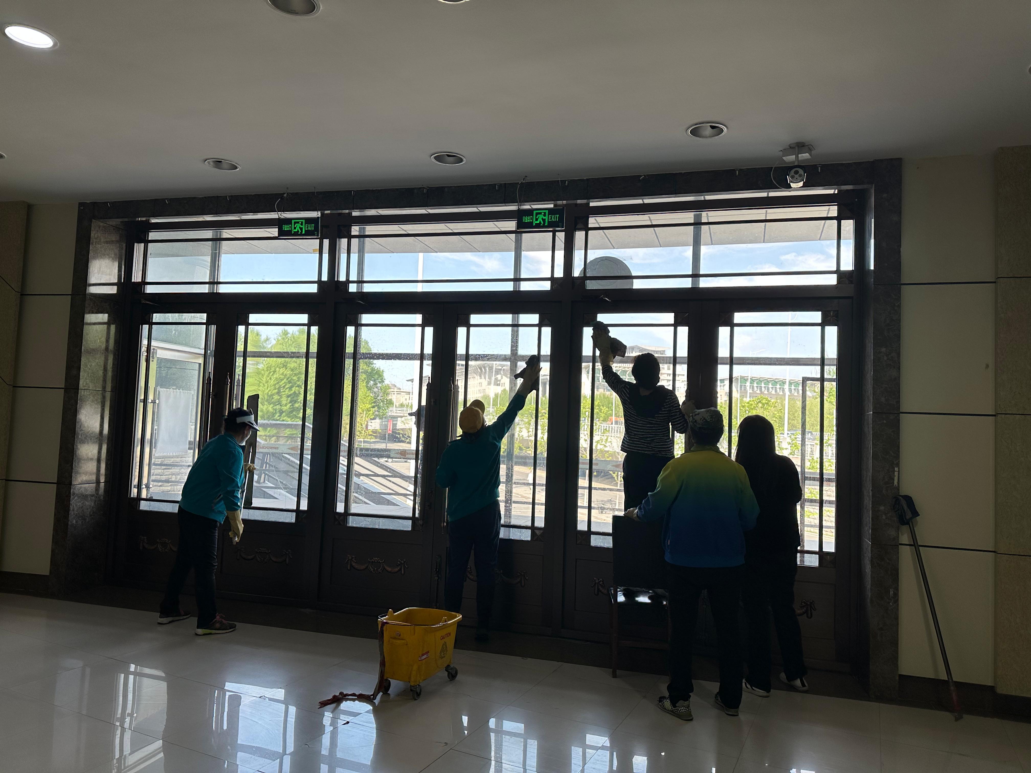为了贯彻落实党的二十大精神,深入践行场馆中心服务学校、服务师生、服务社会的宗旨,2023年5月17日,由党员带头组织全体员工开展“卫生大扫除 党员我先行”的主题党日活动。力求为全校师生及广大体育爱好者营造一个干净、整洁、舒适的运动环境。