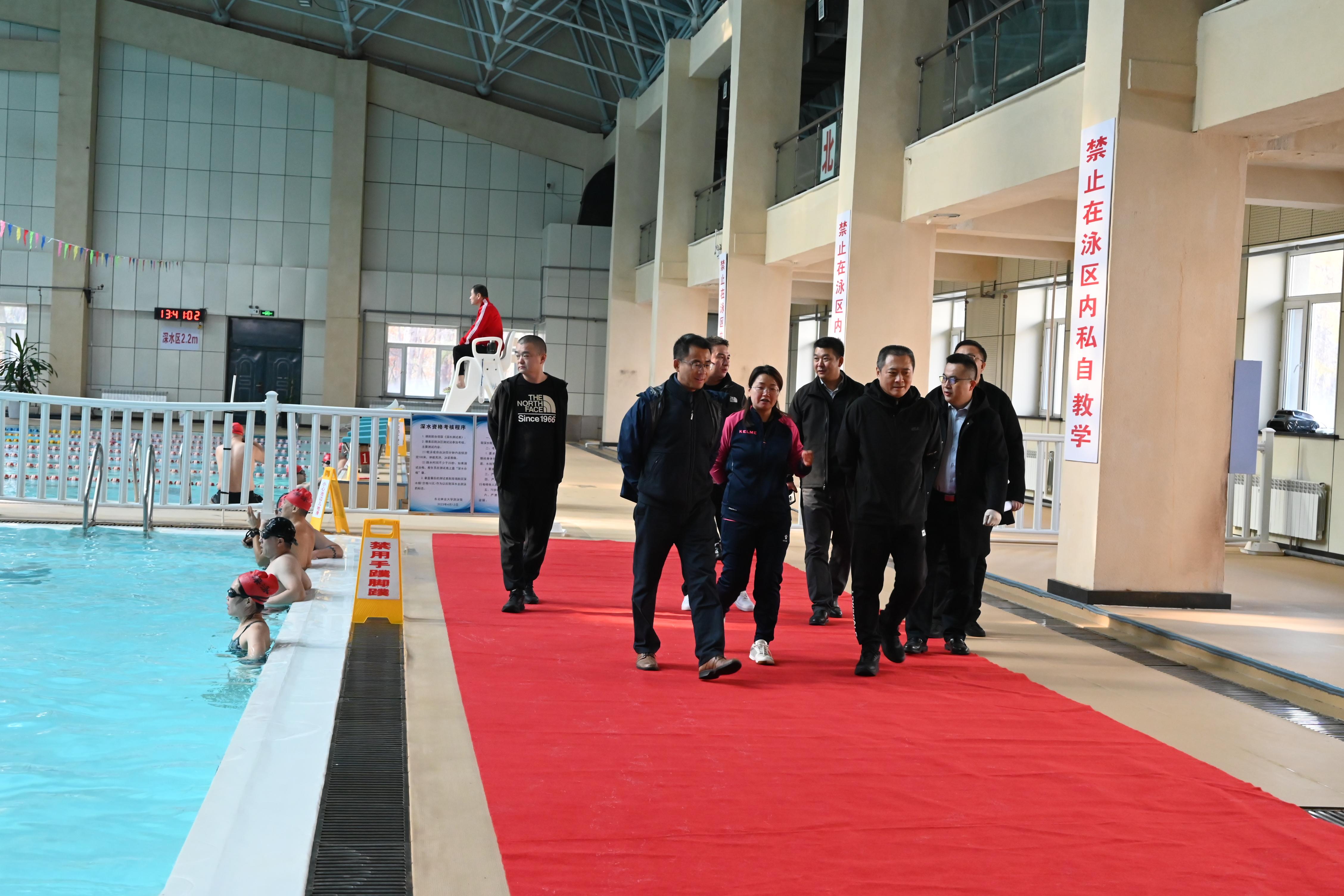 揭牌仪式后,场馆中心工作人员带领嘉宾参观了体育馆、游泳馆。